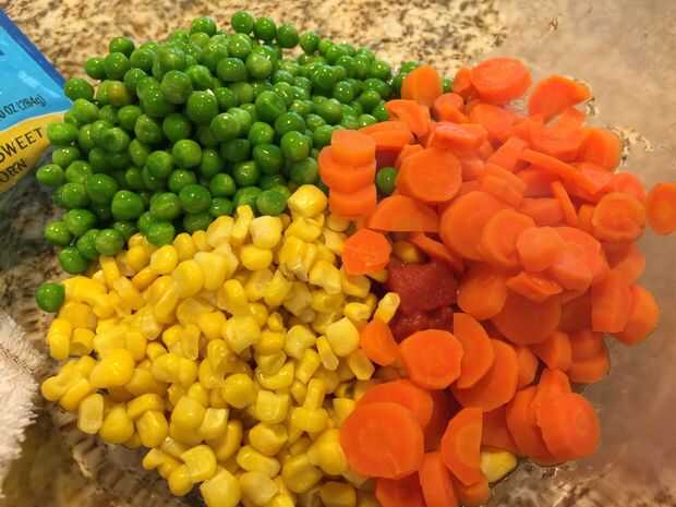 Cuando las zanahorias estén cocidas, agregar a las verduras. Ponga a un lado.