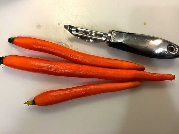 Mientras tanto, pelar y cortar las zanahorias en el espesor de un níquel. Poner en un buho de microondas con 2 cucharadas de agua. Cala con abrigo de saran. Microondas zanahorias 4-6 minutos, hasta que estén tiernos.