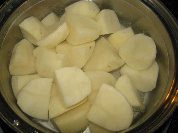 6. cocinar las papas en agua hirviendo hasta que estén tiernos.