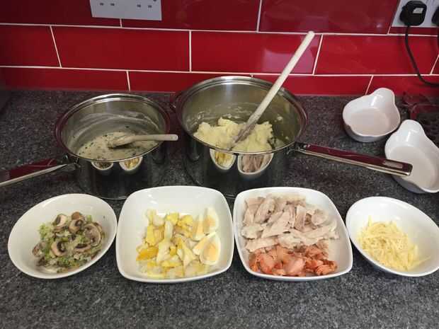 Unos 350g cocido pescado - una mezcla es agradable - aquí utilicé restos de besugo al horno, salmón preparados y algunos abadejo ahumado.