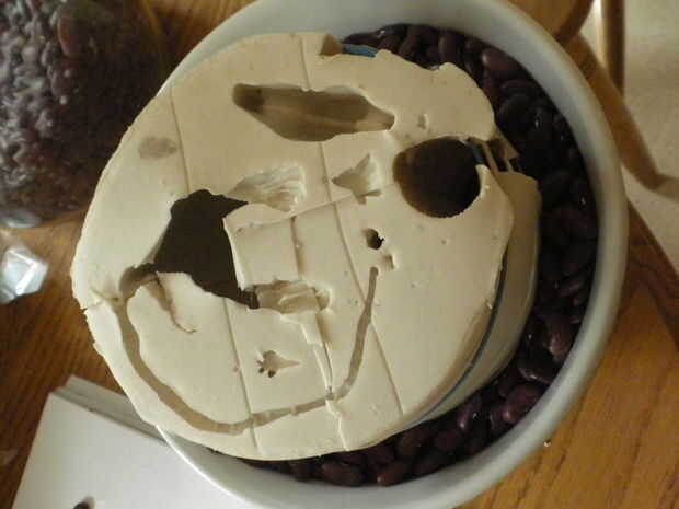 Porque no tengo una tapa plana lo pongo en un plato de frijoles para que lo apoyen.
