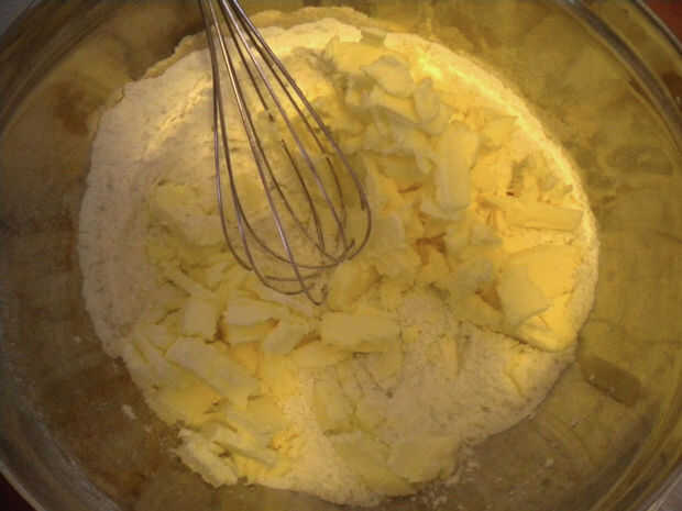 2 palos (16 cucharadas) sin sal mantequilla, enfriada y cortada ½ pulgadas