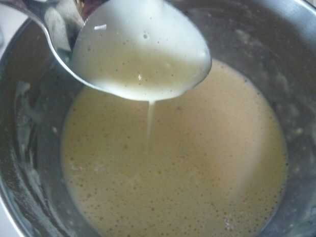 Batir poco a poco harina hasta que quede suave.