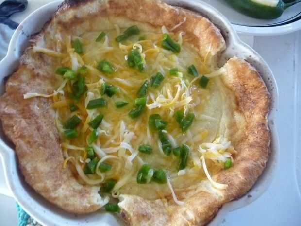 Vierta la mezcla de huevo restante alrededor de los jalapeños. Esparcir el rodajas pimiento rojo en la parte superior.
