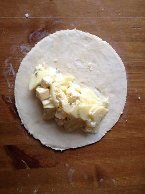 3. Ponga una cucharada de relleno sobre la mitad del disco de hojaldre.