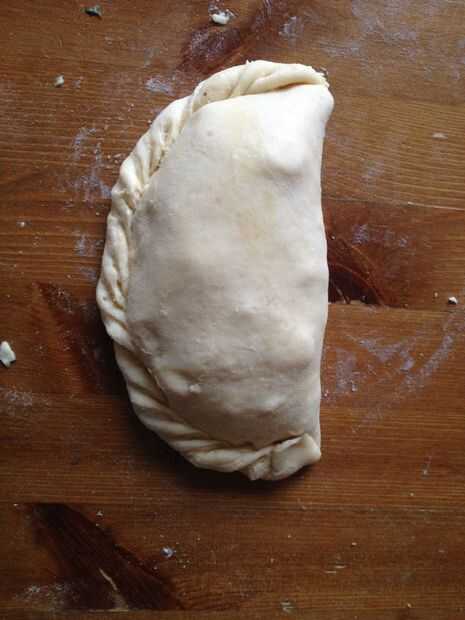 5. prensado el pastel con la técnica tradicional es la clave para hacer un auténtico aspecto pasty de Cornish. La cant de técnica realmente describirse mejor se demuestra en este you tube video. http://www.youtube.com/watch?v=k9NkKQY-Qvg. o doble sobre y sellar con un tenedor.
