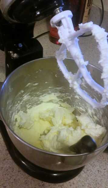 • Crema de 2 barras de mantequilla en una batidora hasta que quede suave.