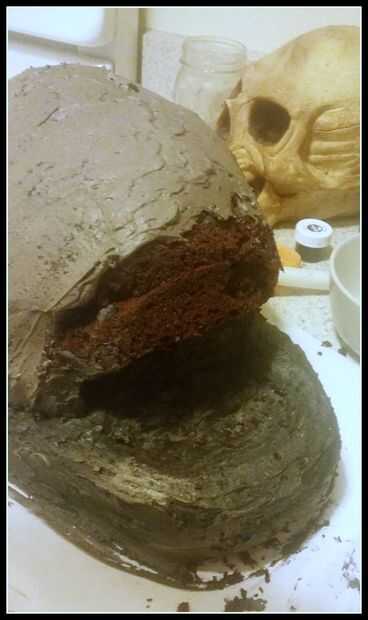 • Utilizar el último (tercer pastel) para formar la boca cortando por la mitad mientras siguen congeladas. Las piezas todavía deben congelarse.