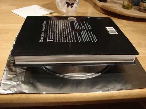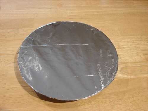 Una vez hice uno con el lado en blanco de un globo de mylar aluminizado y resultó para ser un reflctor muy buena. Recuerdo que era capaz de reflejar una imagen invertida perfecta cerca de la ventana en la pared al lado de la ventana.