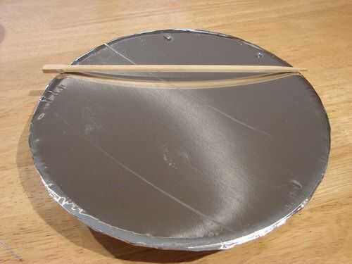 Esta demostración utiliza papel de aluminio doméstico que tiene la desventaja de estar sin pulir, dando por resultado algunos difusion de la luz del sol.
