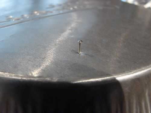 Había originalmente hice esto hace muchos años con una casa para hornear lata de pastel, pero lo que tenía en mano, y fue suficiente para esta demostración, lata de pastel de Callender. No era difícil agregar un pequeño agujero con un alfiler. Había martillado con una cuchara.