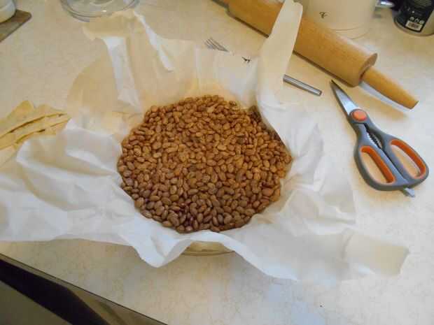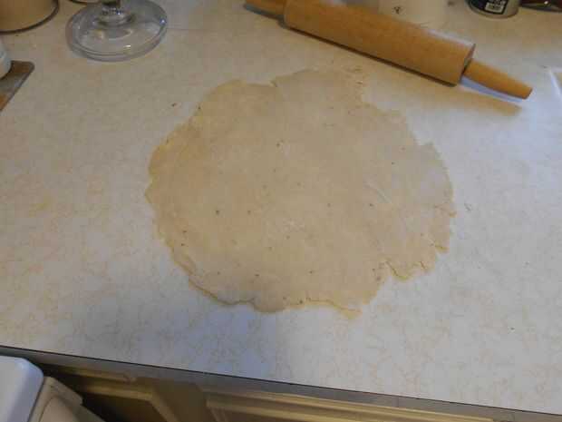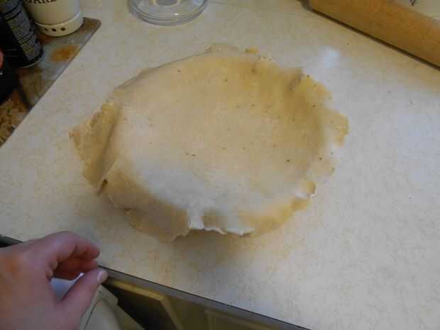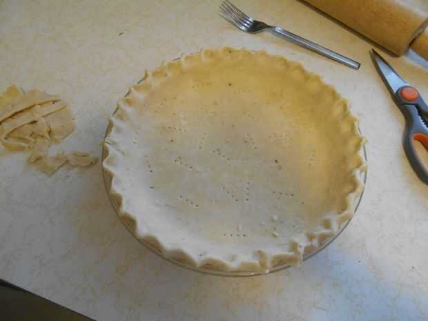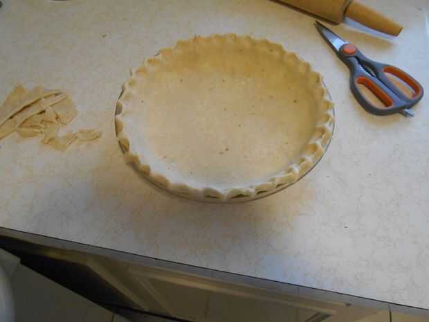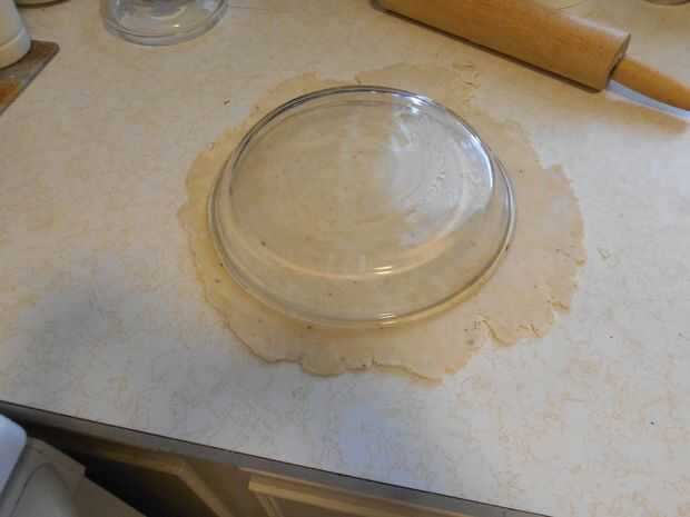 2. mezclar unas cucharadas del agua de hielo en la mezcla de harina a la vez hasta que comience a agruparse. Debe ser capaz de pellizcar la mezcla juntos por lo que tiene. 3. Coloque sobre una superficie limpia y amasar lo suficiente para formar un disco. 4. Espolvoree la masa con harina, cubierta con el abrigo de saran y refrigerar por al menos una hora. 5. Retire la masa de la nevera 5-10 minutos antes de lanzar hacia fuera. Estirar para caber su tartera dejando una una pulgada sobre la caída. Doble los bordes de la corteza. 6. perforar la parte inferior de la corteza con un tenedor unas cuantas veces. Coloque un pedazo de papel de pergamino en la masa. Coloque pesos de pie en la parte superior del pergamino. 7. hornear durante 15-20 minutos. O hasta que la luz y de oro. 8. Saque del horno y deje enfriar.