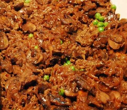 6. las patatas al Gratén de capa sobre la mezcla de carne y verter cualquier salsa de queso en la sartén sobre la parte superior.