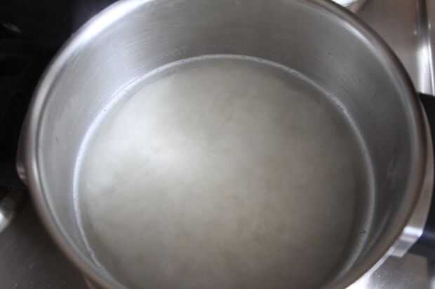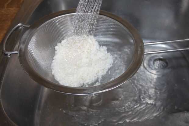Hervir el arroz durante 16 minutos hasta tierna, drenaje y enjuague con agua fría. El arroz debe ser cocinado alrededor del 70% solamente.