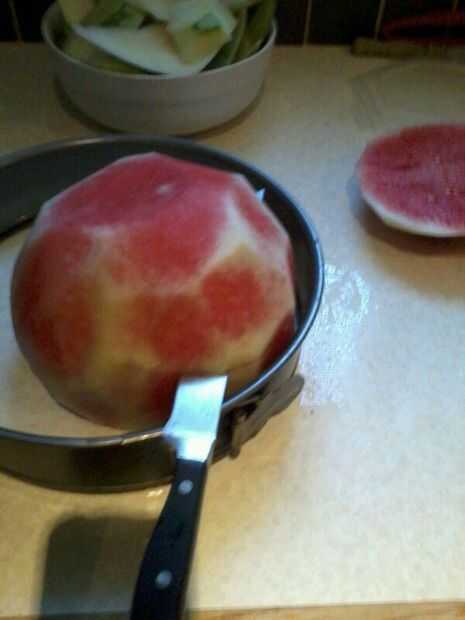 Muy bien! Ahora nos pondremos el melón en forma de pastel!
