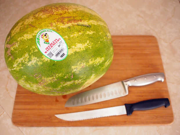 Dependiendo del tamaño y forma de la sandía esperar a retirar 2-5 cm (1/2-2").