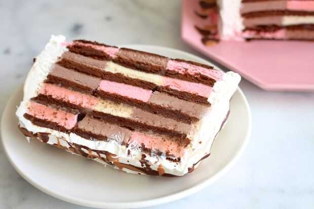 Esta "torta" es fácil de hacer y delicioso! Encontré varios sabores diferentes de sándwiches de helado en mi tienda de abarrotes; chispas de chocolate, vainilla, chocolate y vainilla mezclan.Este es un proyecto de verano para niños ayudar a hace