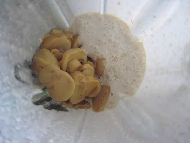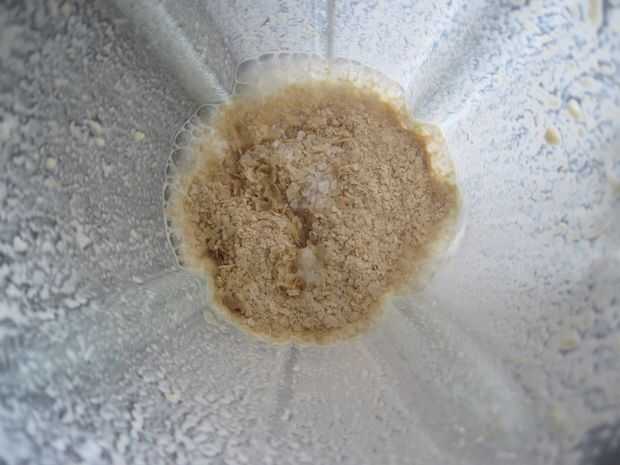 Para hacer el relleno de hongo, mezcla las castañas de cajú, leche de soja, levadura nutricional, sal y jugo de limón en una licuadora o procesador de alimentos hasta que quede suave.