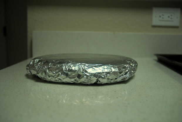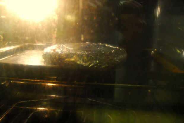 Ahora toma tu sandwich aplanado y tirarla en el horno, todavía en la lámina, durante unos 20 minutos a 315 grados.