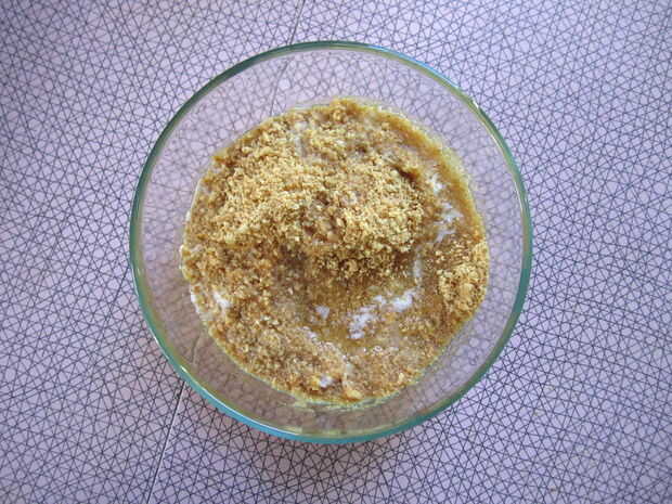 Una vez están aplastados, combinarlos con 6 cucharadas de mantequilla y 1/2 taza de azúcar.