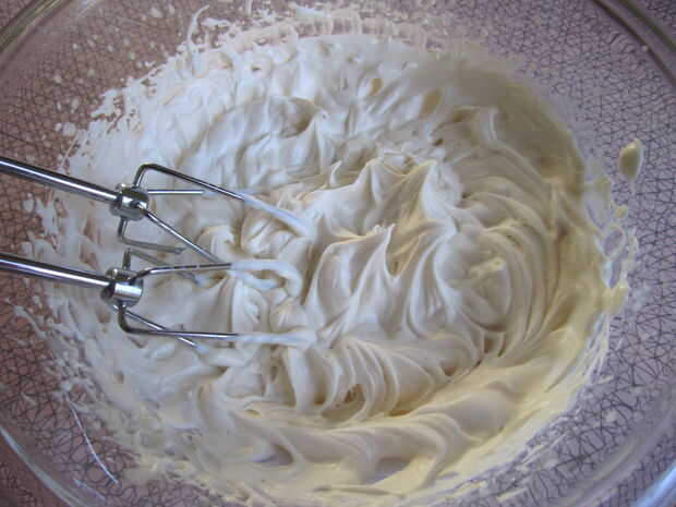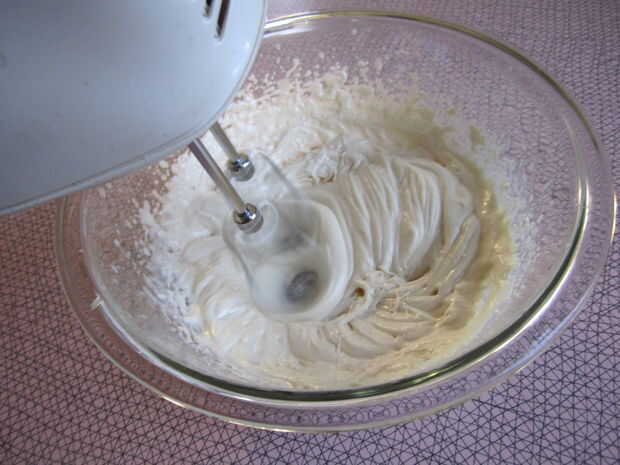 A vencer esto juntos en alto hasta que forma picos suaves - el paquete dice que tomará 4 minutos. Yo diría que es de derecho.