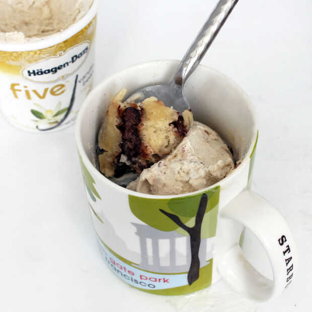 Como explico en el receta de pastel de Chocolate de 5 minutos, hice un montón de experimentación para determinar la cantidad adecuada de huevos a utilizar. Esta receta utiliza un poco menos de azúcar y el aceite en un intento de aclarar un poco. Todavía prefiero la variedad chocolate, pero este no es mala cuando sólo tienes unos minutos y realmente necesita el pastel!