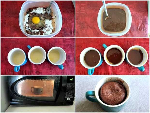 Dejar 1/4 del espacio en la parte superior para aumentar la torta de la taza. Microondas durante 2 minutos.