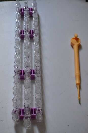 sus materiales. Necesita 45 claro o bandas, 2 bandas negras y 1 banda de su elección de colores. También necesitarás un gancho que se avecina, te recomiendo un metal.Paso 1: que se avecina Asegúrese de que su telar semicírculos son hacia usted.Paso 2