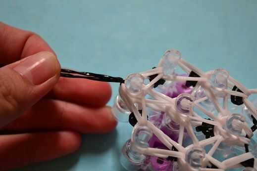 Paso 1: Lo que se necesita Necesita 38 bandas rosa luz8 bandas de color de rosa caliente4 bandas negras4 bandas amarillotelar del arco 1 iris1 ganchoPaso 2: Comenzar su buho Take 2 luz rosa bandas y ponerlas como en la foto. Estos serán tus oídos! A