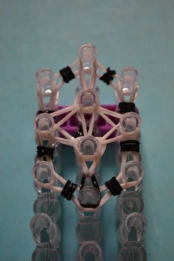 sus materiales. Necesita 45 claro o bandas, 2 bandas negras y 1 banda de su elección de colores. También necesitarás un gancho que se avecina, te recomiendo un metal.Paso 1: que se avecina Asegúrese de que su telar semicírculos son hacia usted.Paso 2