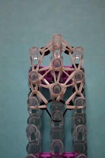 Paso 1: materiales Telar del arco irisBandasGanchoPaso 2: Colocación de bandas Tomar una banda primero ir de media peg a enfrente de él. Luego tomar dos bandas y hacer lo mismo en la fotografía. Ir de media ped en la clavija correcta diagonaly, hacer