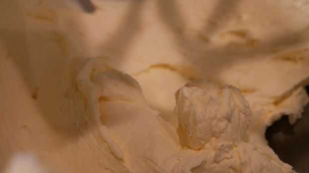 Batir la mantequilla hasta ligero y mullido. Añadir el azúcar glas y continuar batiendo durante 10 minutos hasta que la mezcla se haya doblado en volumen. Agregar el queso crema y la vainilla y batir hasta que todo se incorpore.