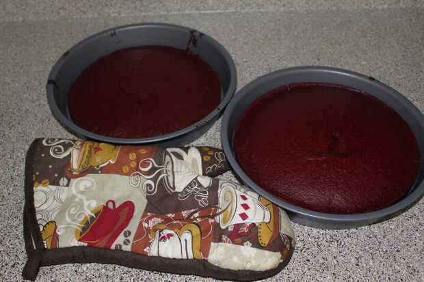 pastel de terciopelo rojo es mi favoritoLo disfruto con glaseado de queso cremaEs muy húmedo y suavePaso 1: ingredientes 2 barras mantequilla2 1/2 taza de azúcar4 huevos3 tazas de harina1/2 taza sin azúcar cacao en polvo1 cucharadita de polvo de horn