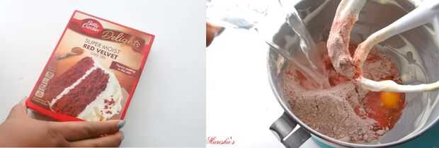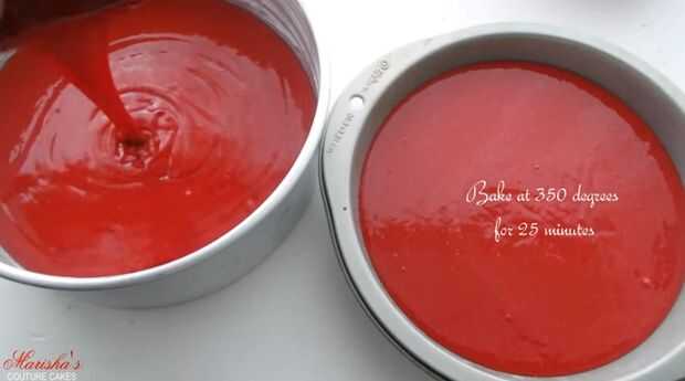 No dude en utilizar una receta casera. Vamos a utilizar un pastel de caja para mayor comodidad y manejo del tiempo. Elija su mezcla de pastel de terciopelo rojo favorito y preparar los pasteles como se indica en el cuadro. Preparar los moldes por engrasar los lados y colocar piezas equipadas de pergamino en la parte inferior de la cacerola. Dividir la masa entre los moldes y hornee a 350 grados durante 25 minutos.