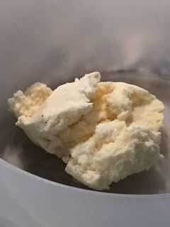 En un molde de tarta o un recipiente circular tomar unas cucharadas de vainilla-helado.