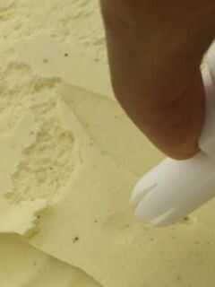 Con una esponja tibia recorrer el barco. esta voluntad de losen el pastel de helado de la forma sobre la placa. Aplanar los lados y la parte superior de la torta si desigual con una espátula o un cuchillo de mantequilla.