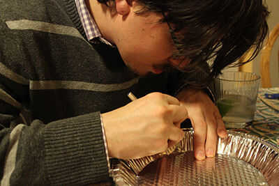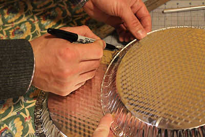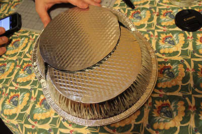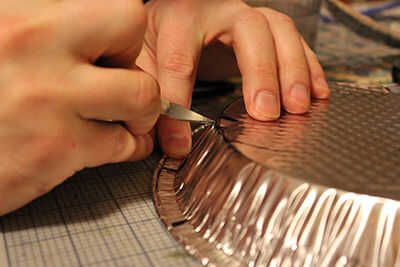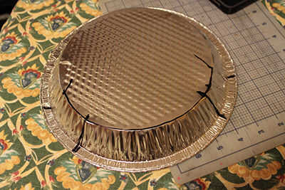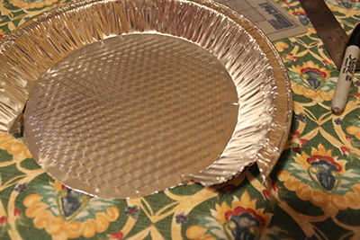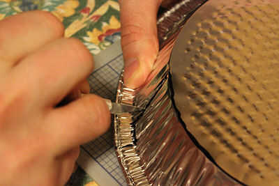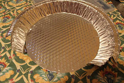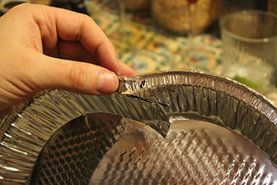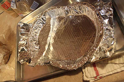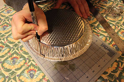 Cubrir la cosa entera con papel de aluminio para ocultar los bordes ásperos y evitar quedar atascado en su tarta. Esto también hará más fácil extraer su pie ogram para una presentación del plato más tarde si lo desea.