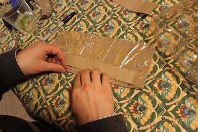 Poner su contorno ogram de pie completamente empalmado y alineados en una bandeja para hornear galletas. Conseguir sus dos pedazos de cartón cubierto de hoja interior práctico y me siga al siguiente paso!