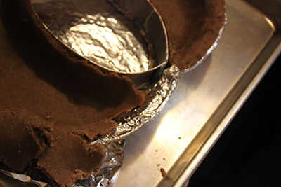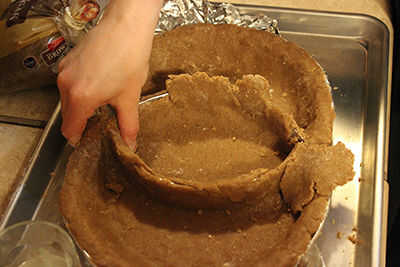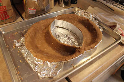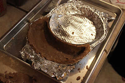 Para cubrir un tercio de la forma de su pie ogram, ti puede ser más útil tener un par adicional de manos (también conocido como el ' encantadora ayudante') para llevar a cabo un pedazo cartón cubierto de papel de aluminio interior. Una vez empieces a moldeado alrededor de la tarta, sin embargo, llega a ser bastante autosuficiente.