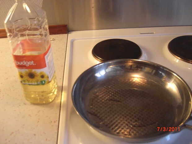 Me gusta freir mis verduras y sólo hervir ellos si se trata de espinacas o similar, así que traer un pan y prepárate para freír :) Utilizar una pequeña cantidad de aceite de sunseed, unas dos cucharadas, sólo lo suficiente para no quemar las verduras en la sartén.