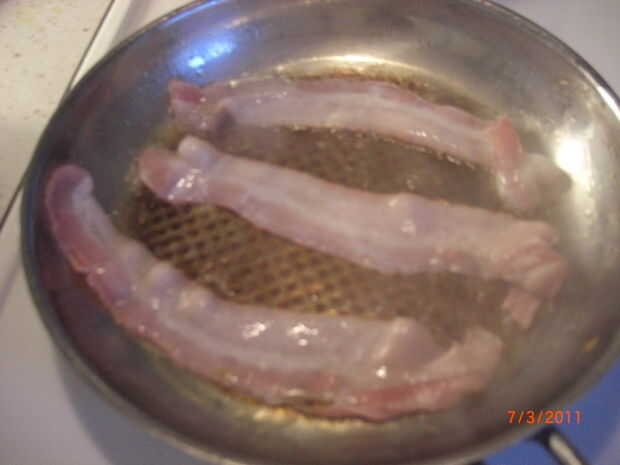 Freír el tocino hasta es agradable y cracky, sin ser quemado. Si tiene dudas, gusto Esto va para el relleno.