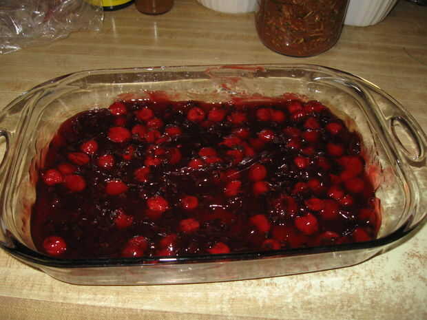Descarga en el relleno de pastel de cereza. Había utilizado cerca de 20 onzas de rellenar esta torta de descarga. Fue sabroso y todo el mundo le gustó, pero pensé que podría haber usado un mejor cociente de relleno para torta.