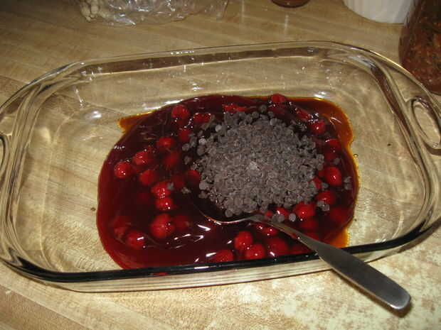 Por último, agregar 1/3 a 1/2 taza o lo de mini chips de chocolate. Agregue la cantidad más grande si utilizas más de 20 onzas de cereza pastel relleno. O si realmente te gusta chocolate :)