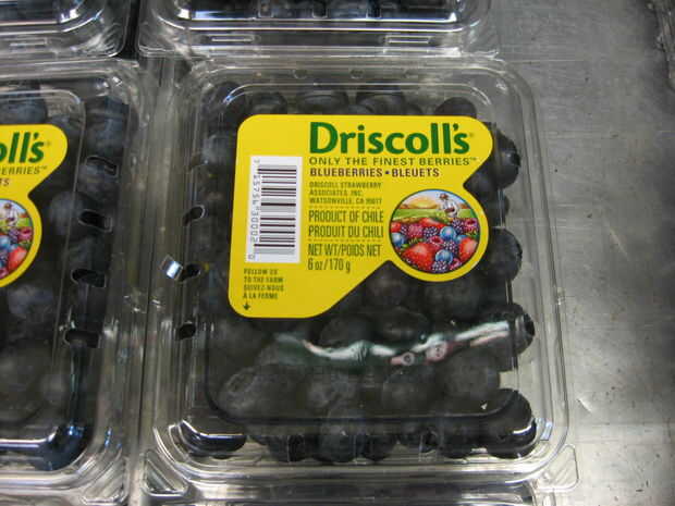 Arándanos, sobre una taza, así