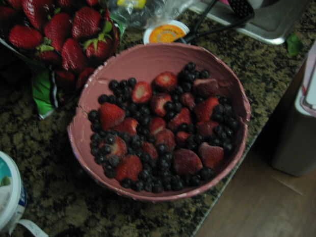 Tomar fruta y colocar en un recipiente para triturar. Después de la fruta ha sido lugar puré en procesador con yogur y hacer un puré.