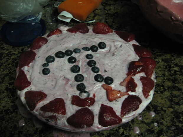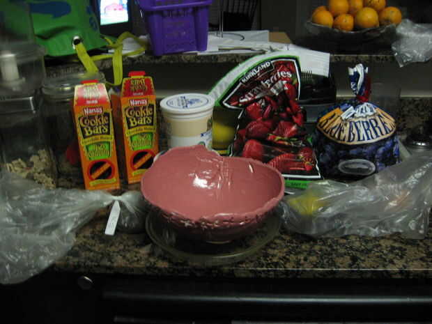 Mezcla de yougrt de cuchara en corteza. Doble Cool Whip y decorar