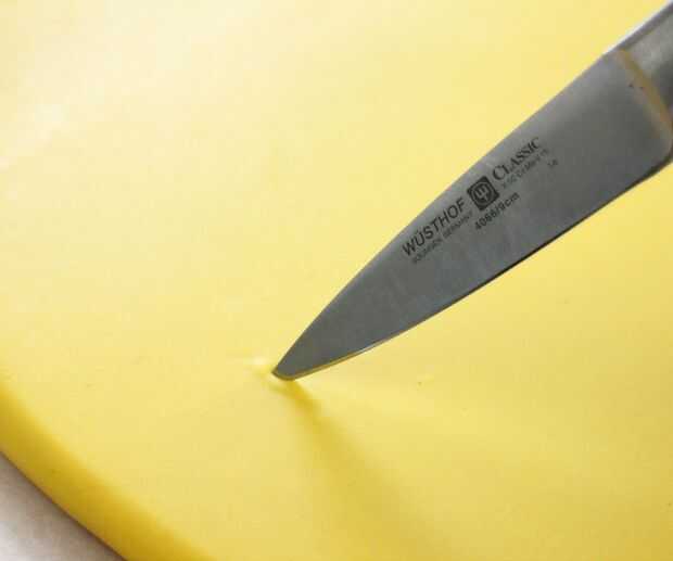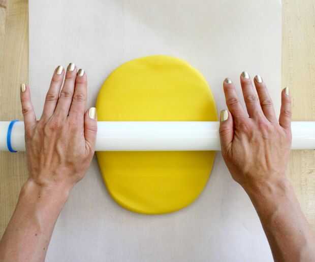 Rodillo con cuidado el fondant hasta el grosor deseado y es lo suficientemente grande como para cubrir el pastel. Manteniendo el molde para pasteles sobre él es una manera fácil de 'eyeball' que sea lo suficientemente grande o no.
