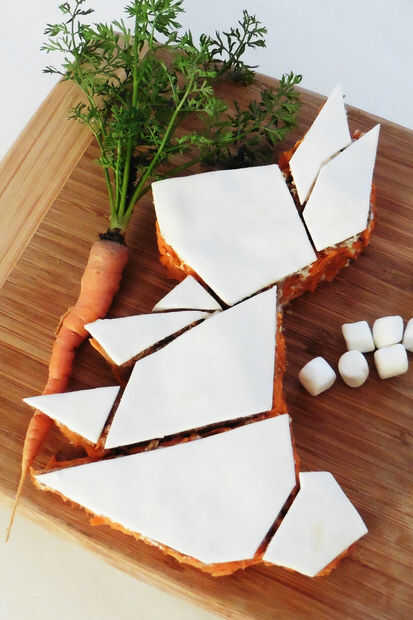 Usted también necesitará imprimir una plantilla de conejo. Cortar las piezas individuales del cuerpo de conejo y reservar las piezas para más adelante. Estos se utilizará para forma pastel y el fondant.