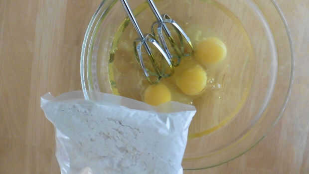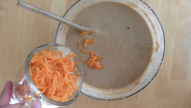 muy pastel de zanahoria fácil!Paso 1: Pastel de zanahoria Ingredientes de pastel de zanahoria4 huevos1 1/4 tazas aceite2 tazas azúcar blanca2 cucharaditas de extracto de vainilla2 tazas de harina2 cucharaditas de bicarbonato de sodio1 cucharaditas de