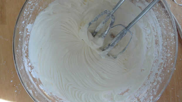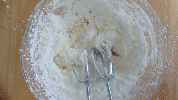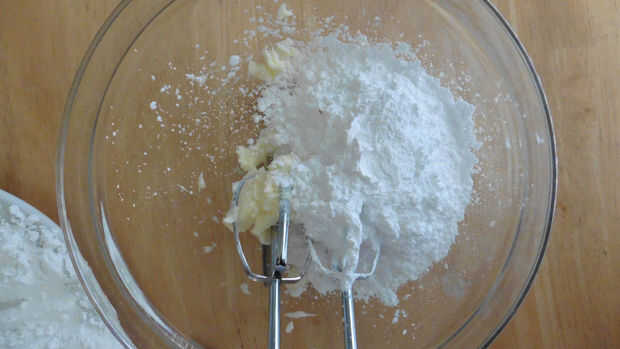 En un tazón, use una batidora eléctrica a crema la mantequilla. Luego, gradualmente añadir el azúcar en polvo. No parece que mucho ha sucedido porque la mezcla todavía se verá como el polvo. Batir en la leche y extracto de vainilla - esto hará que un betún cremoso.